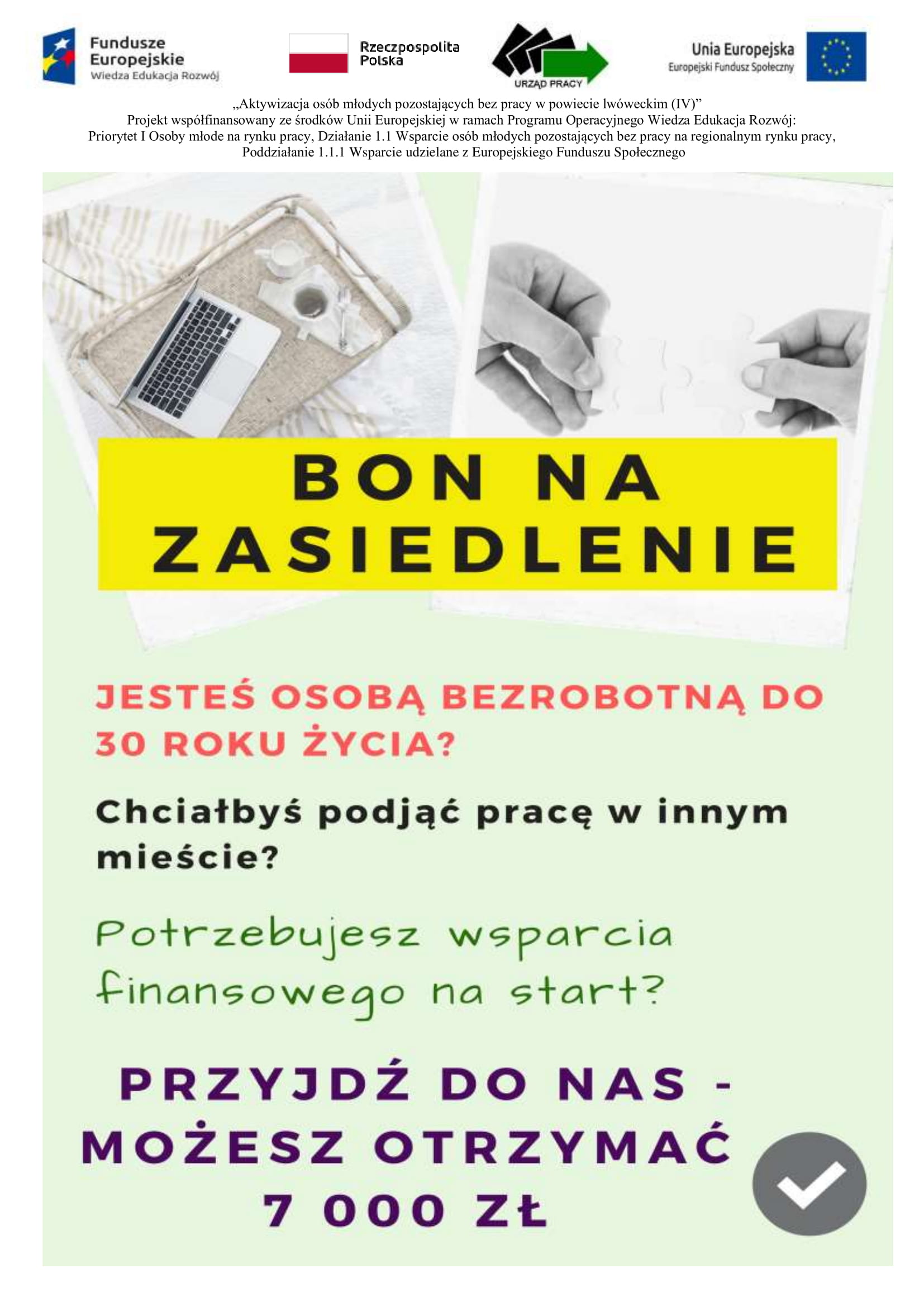 Powiatowy Urząd Pracy w Lwówku Śląskim zaprasza wszystkie osoby bezrobotne do 30 roku życia do składania wniosków o przyznanie bonu na zasiedlenie. Szczegółowe informacje można uzyskać w urzędzie w pokoju nr 13 bądź pod numerem telefonu 75 782 4224 wew. 276.