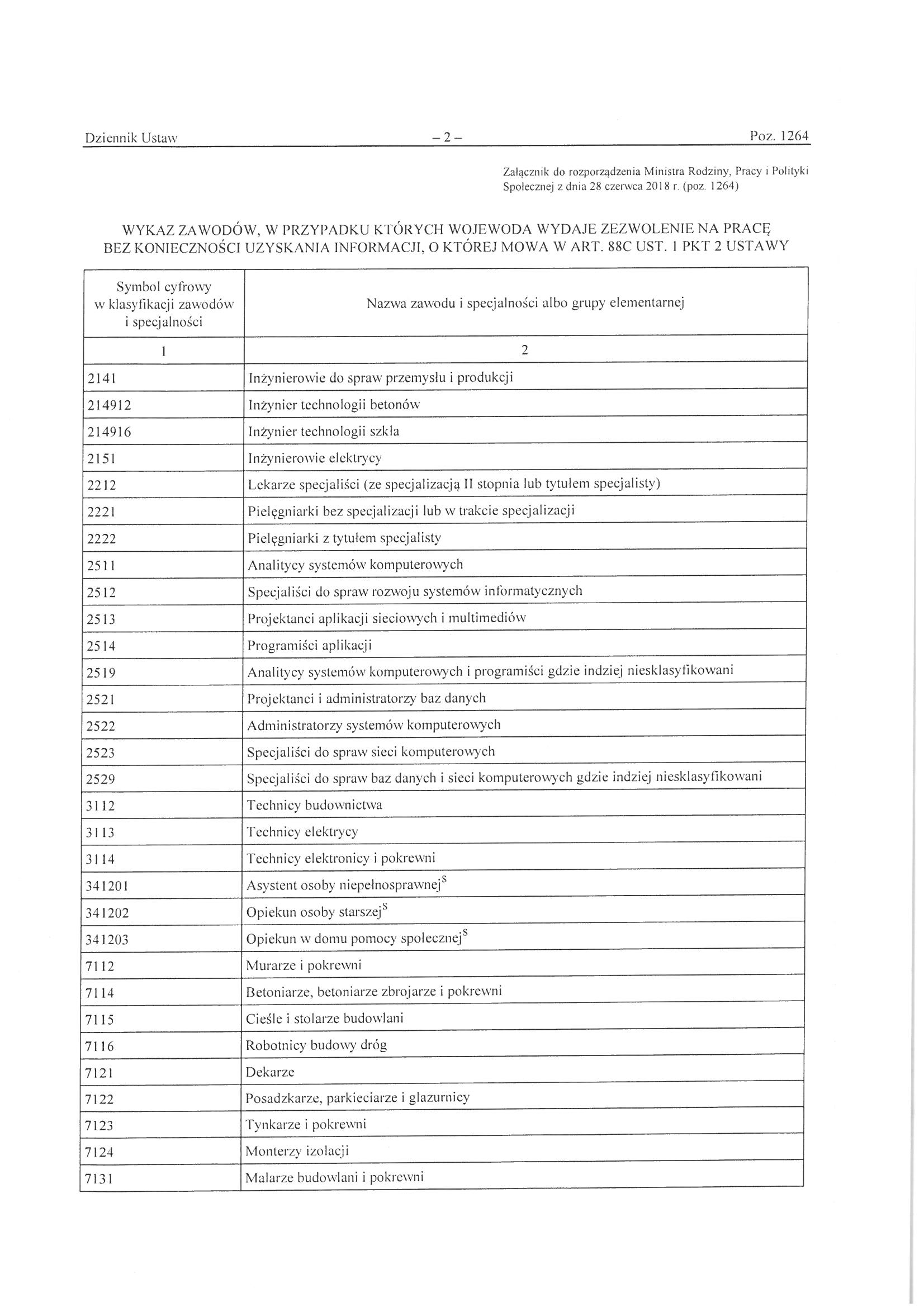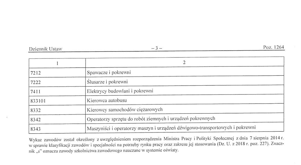 Rozporządzenie Ministra RPiPS przedstawiające wykaz zawodów zwolnionych z konieczności uzyskania informacji Starosty o lokalnym rynku pracy