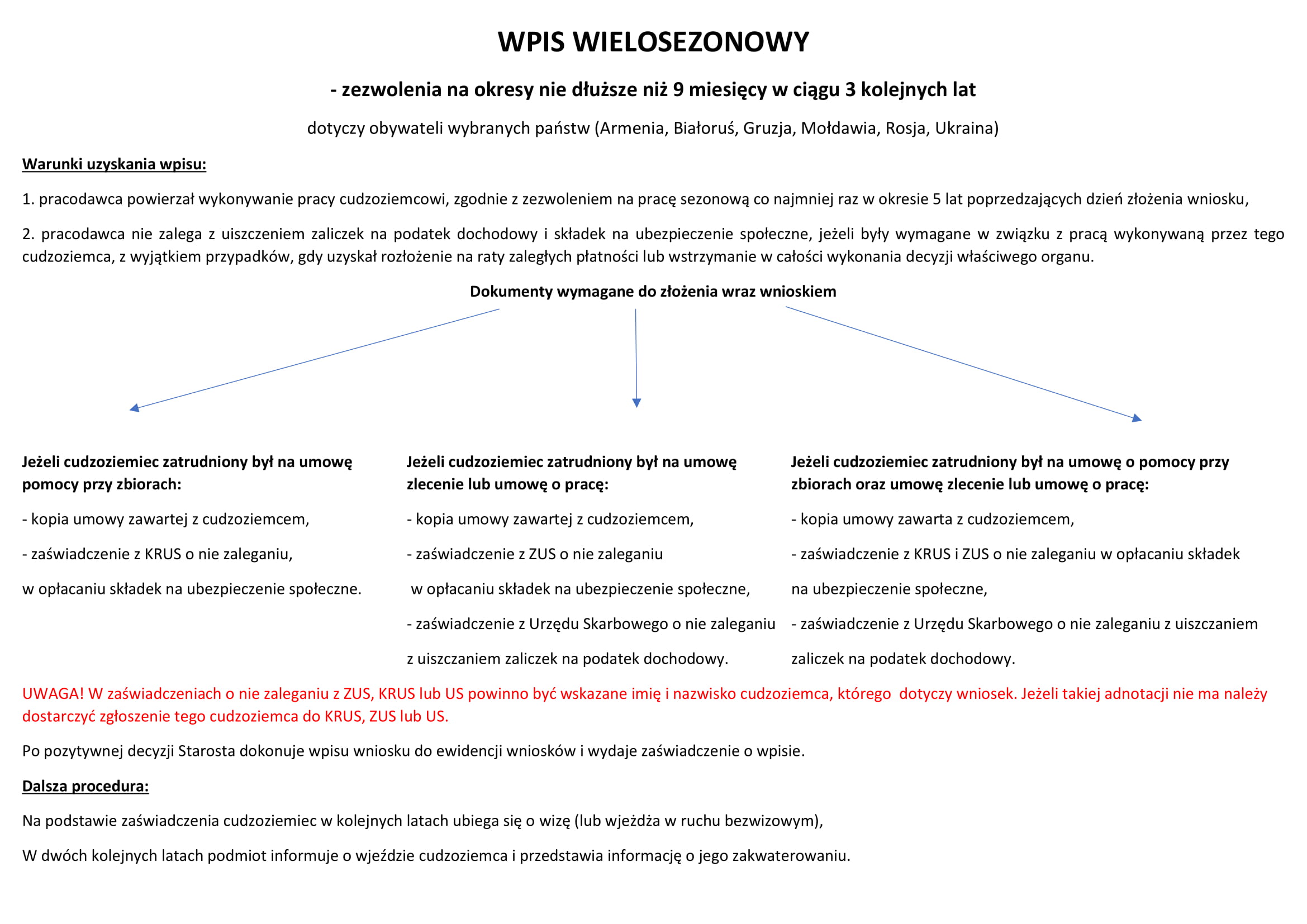 Wpis wielosezonowy - zezwolenia na okresy nie dłuższe niż 9 miesięcy w ciągu 3 kolejnych lat