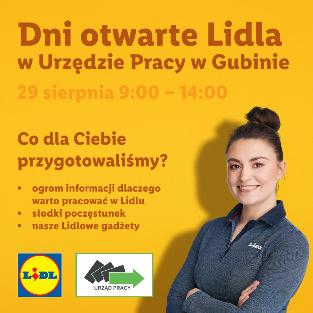 Serdecznie zapraszamy osoby zainteresowane na spotkanie z przedstawicielem sieci sklepów LIDL Sp. z o. o. Sp. K., które odbędzie się w dniu 29.08.2025 r. w siedzibie Powiatowego Urzędu Pracy w Krośnie Odrzańskim Filia w Gubinie, ul. Obrońców Pokoju 20, w pok. 12 w godzinach od 09.00 - 14.00.