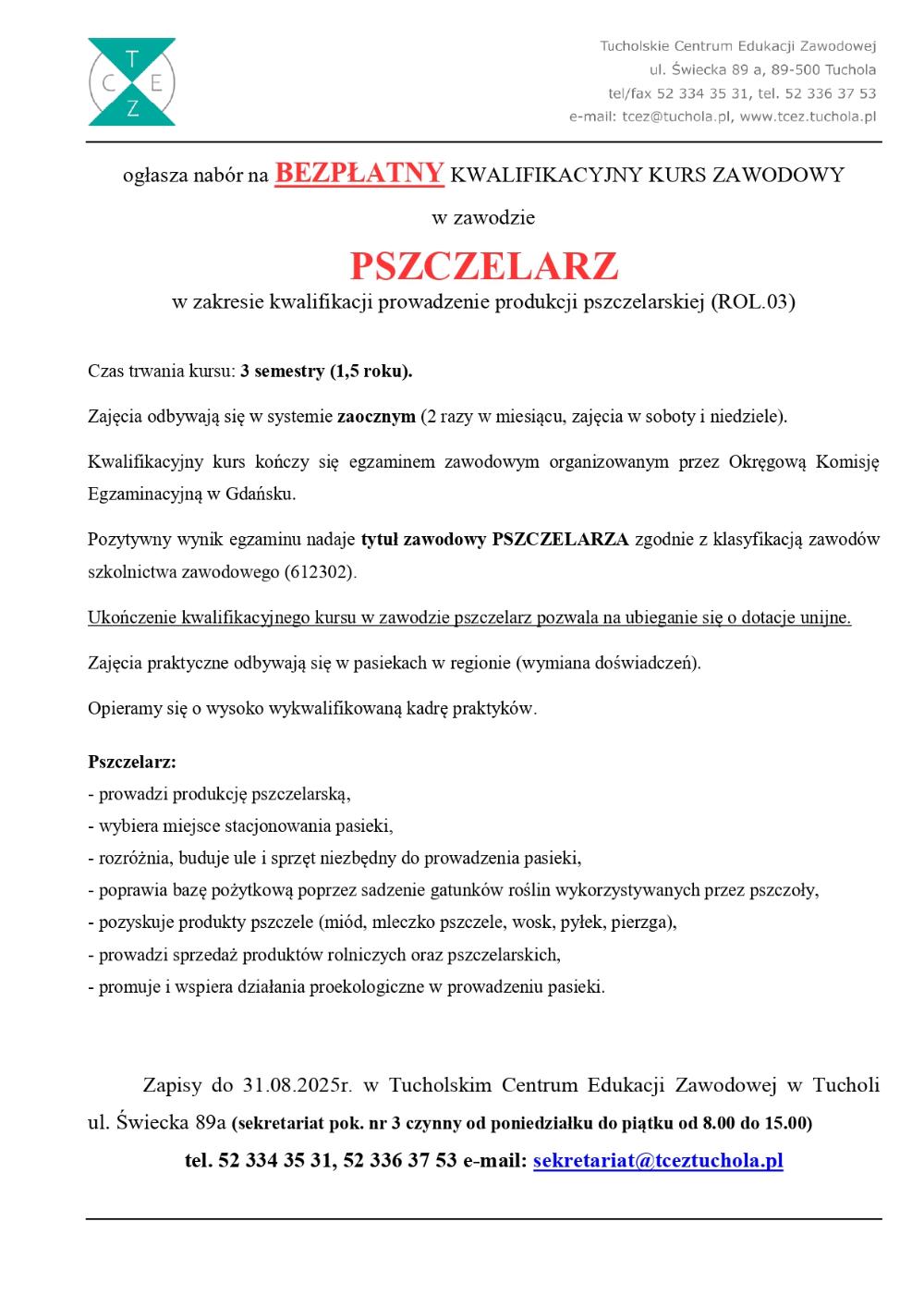 Nabór na bezpłatny kurs w zawodzie pszczelarz